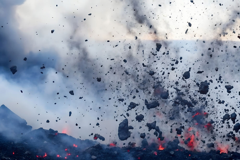Laibhe agus gáis nimhiúla á gcaitheamh amach as bolcán