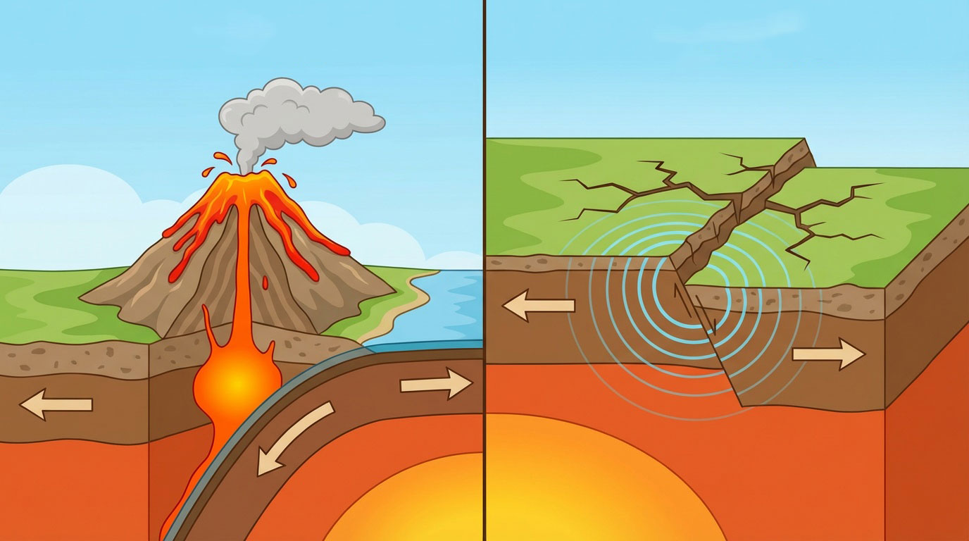 In amanna, nuair a bhuaileann plátaí an Domhain in éadan a chéile nó nuair a bhogann siad ar shiúl óna chéile, bíonn bolcáin nó creathanna talún ann